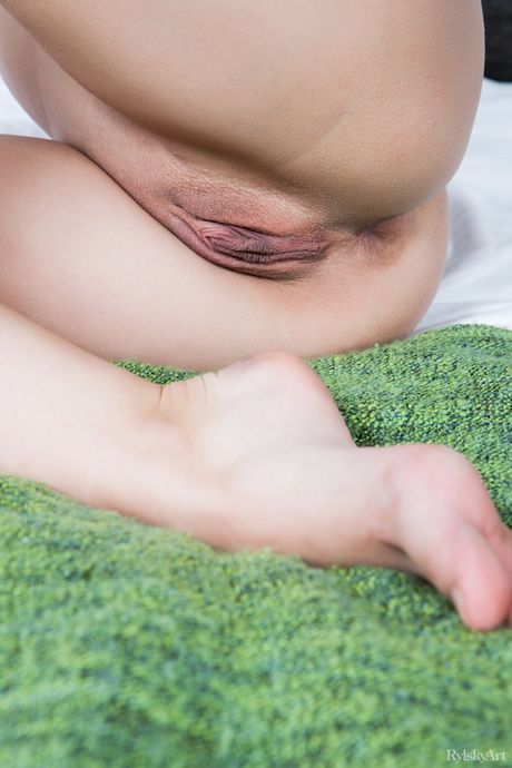 Cute teen Zelda with tiny tits and bald pussy posing naked in the studio