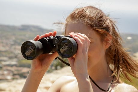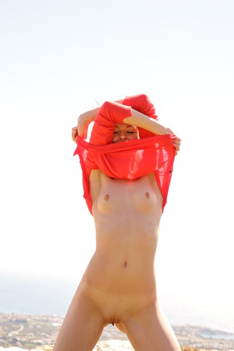 Delicate teen Alice May bares all in the forest & shows her bald pussy up close