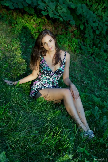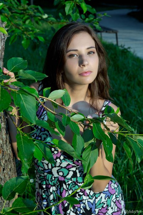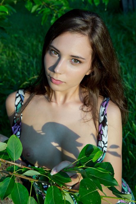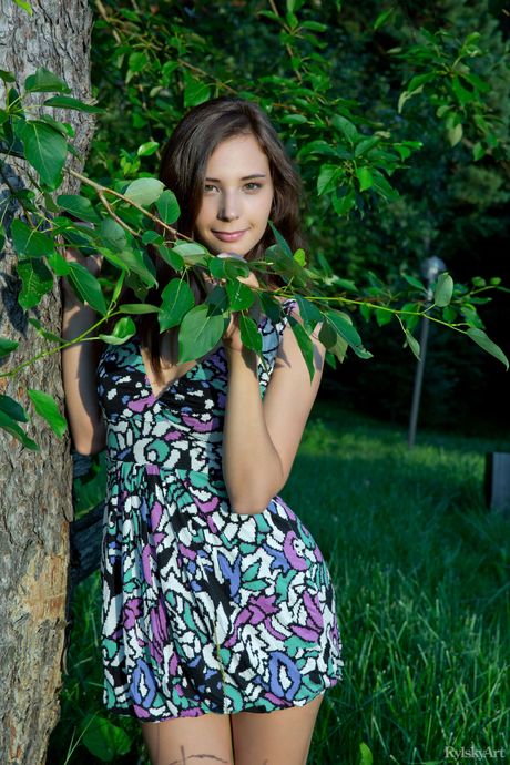 Delicate teen Oretha Mars gets naked on a patio in a pair of sandals