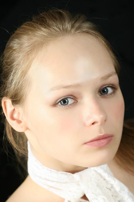 German teen Mia strips her black dress & shows her hot body & bald pussy