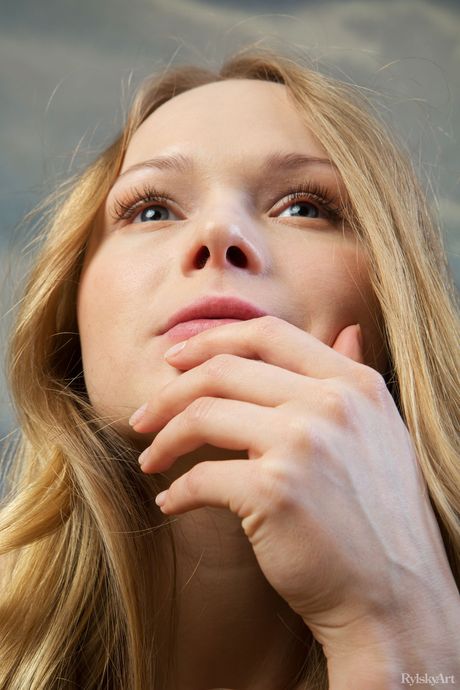 Gorgeous German teen Mia poses naked in her bedroom with her hair down