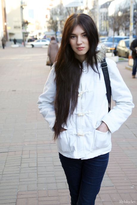 Innocent teen Quillian gets naked on a sidewalk in front of a building