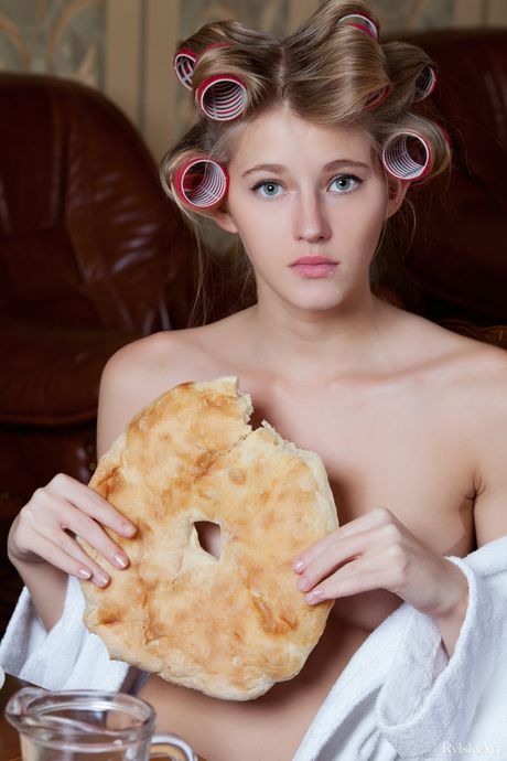 Lean teen Mila shows off her tiny tits and shaved pussy in the nude