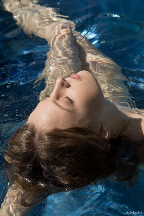 Lean teen Nikia takes a skinny dip in an outdoor hot tub while all alone