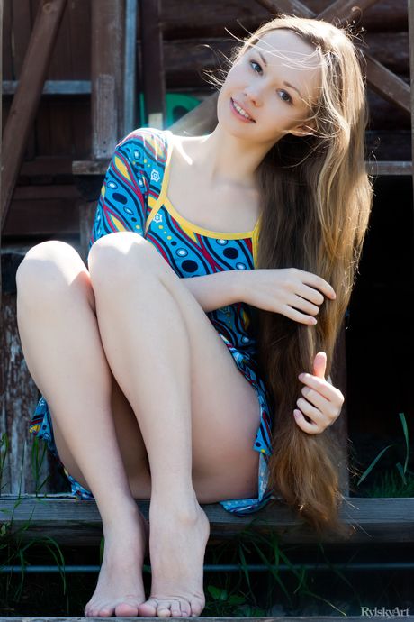 Lean teen Virginia Sun strips and poses nude in a solo shoot