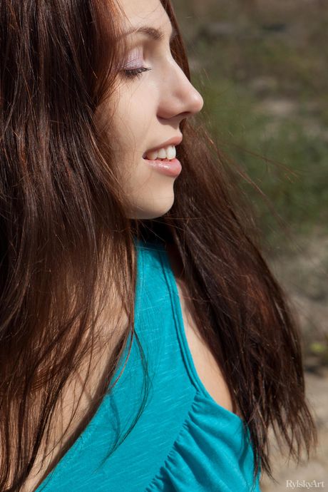 Nice teen Gemma gets totally naked in boots on a snowy road in the mountains