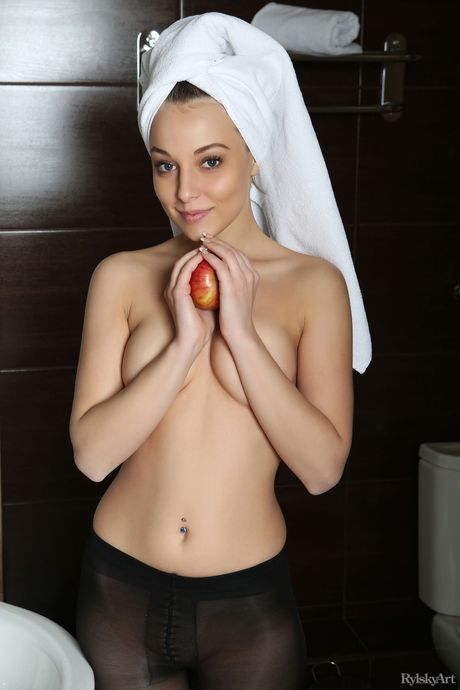 Nikia takes off her pantyhose and poses in the bathroom