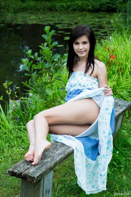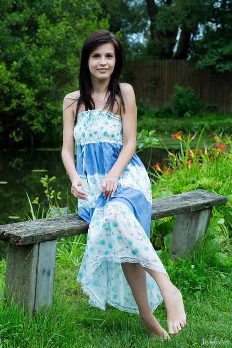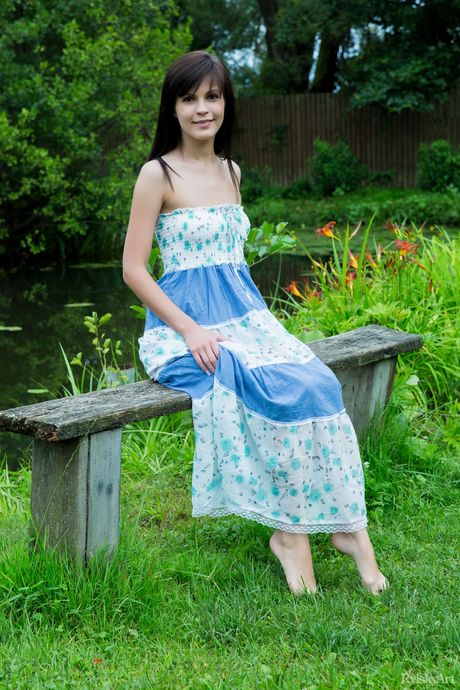 Perfect teen Zelda strips her dress & exposes her big ass & bald pussy outdoors