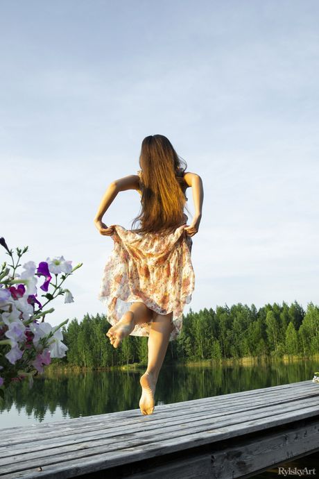 Russian lovely Taliah gets naked on a sandy beach and shows her bald pussy