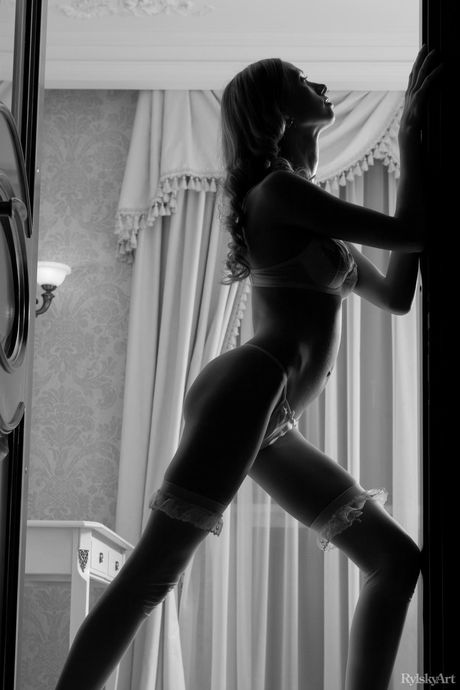 Sexy blonde Augusta Crystal demonstrates her tiny tits and poses naked
