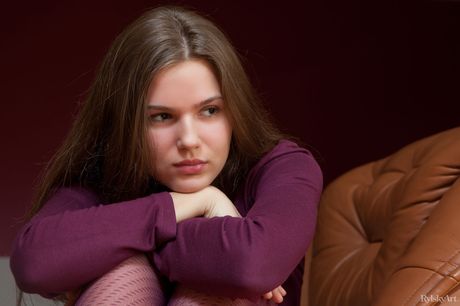 Sexy Russian beauty Aurika models in the nude on a bed with conviction