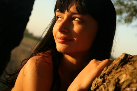 Sexy Russian lovely Katia Mau poses nude on a rocky outcrop