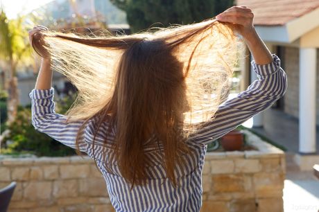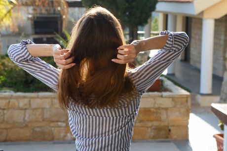 Skinny Ukrainian cutie Monique Fae strips and poses naked in a solo