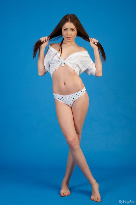 Svelte teen Casia shows her small tits and poses nude in a solo