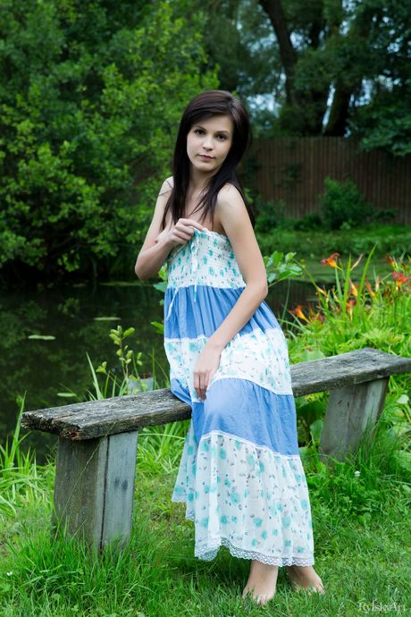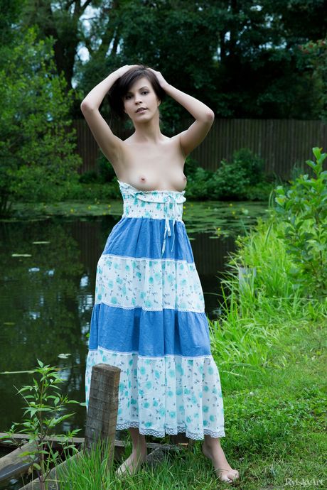 Tempting teen Zelda shows her hot ass and pussy in the water by the shore