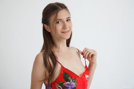 Tender teen Yanetta puts the focus on her full bush while modelling in the nude