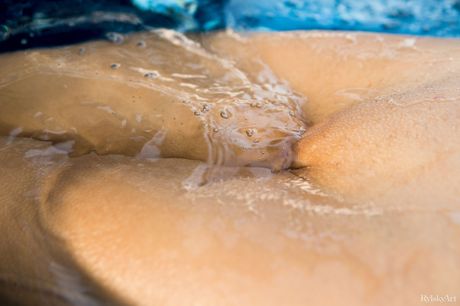 Winsome teen Margaux highlights her hairless pussy while naked in a hot tub