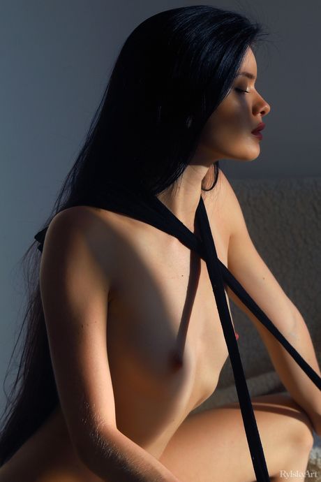 Young beauty Ariana Mun removes pantyhose to get completely naked