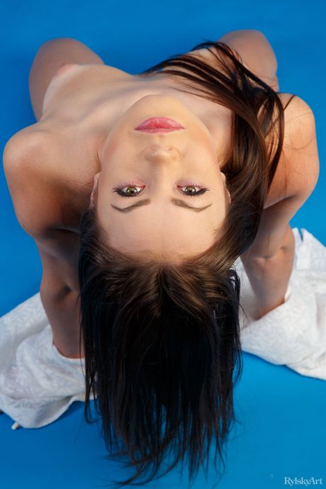 Young brunette Casia pulls polka-dot underwear down around her knees