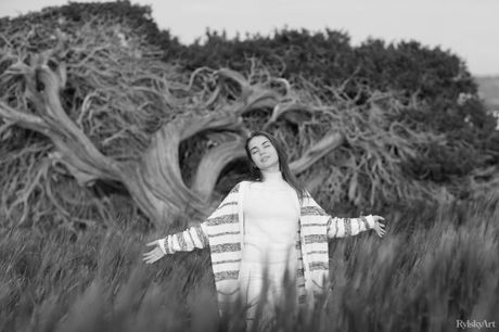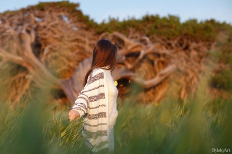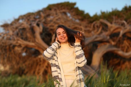 Young brunette Sofy Bee gets nude in a field of wildflowers