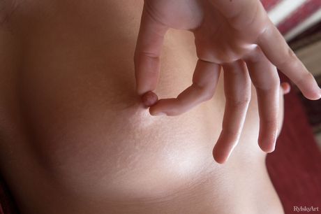 Young redhead Genie Agila models totally naked in a carefree fashion You