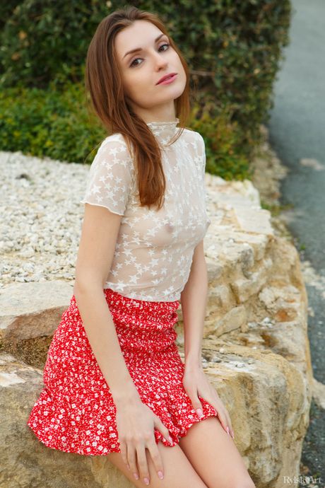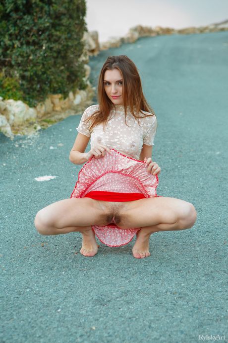Young Ukrainian Monique Fae shows her naked ass and pussy on a road