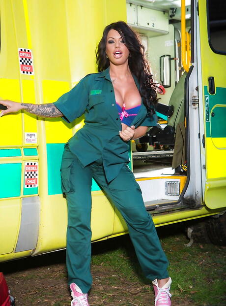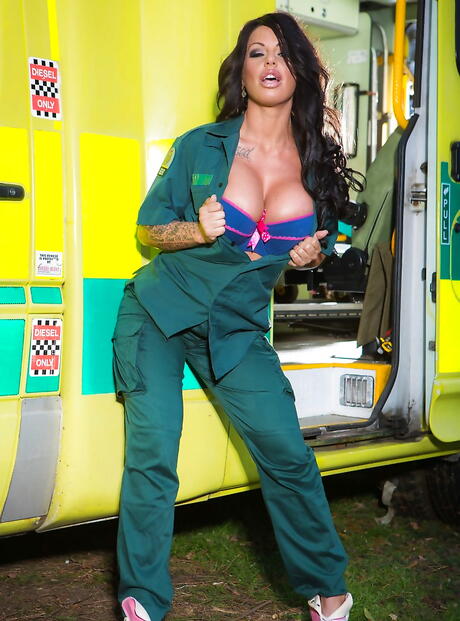 Seductive british brunette milf Kerry Louise showing big knockers and vagina