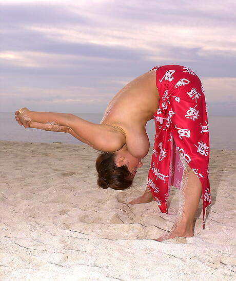 Seductive german milf Chloe Vevrier revealing big boobies and hairy twat at beach