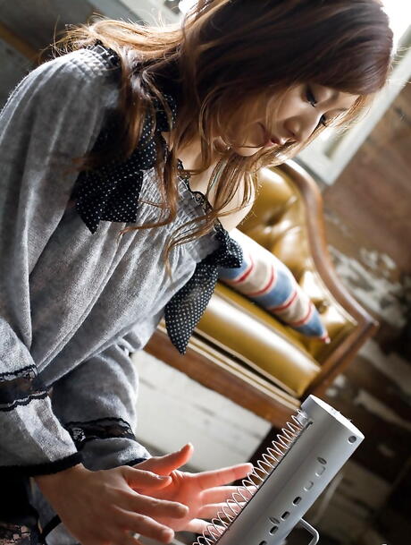 Seductive japanese babe Emi Harukaze posing in undies on camera