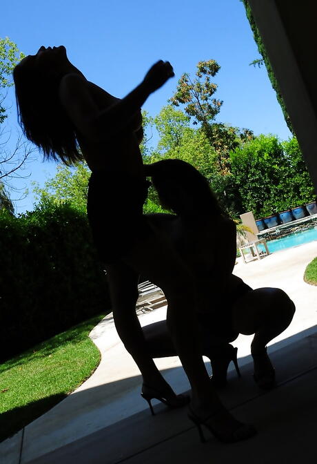Seductive lesbians Elexis Monroe and Rachel Steele into sensual lesbian humping at pool