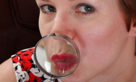 Seductive older Clarissa exhibits big knockers and spreads her legs