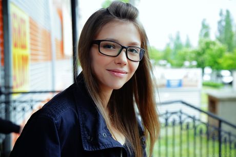Angelic teen Mila Azul removes her lingerie to show her nice tits and pussy