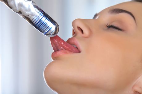 Attractive teen Vanda B licks a dildo after it was in her pussy