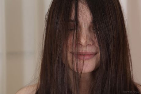 Cute teen Kinsley removes a bodysuit before fingering her pussy on a bed