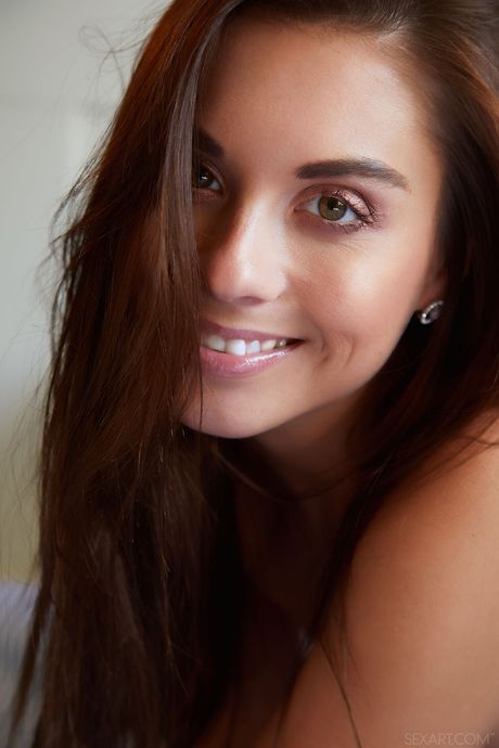 Lean teen Sabrisse A fingers her pussy after getting naked on her bed