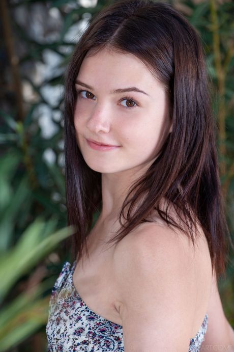 Perfect teen Matty gets naked on a patio and masturbates with a watering can