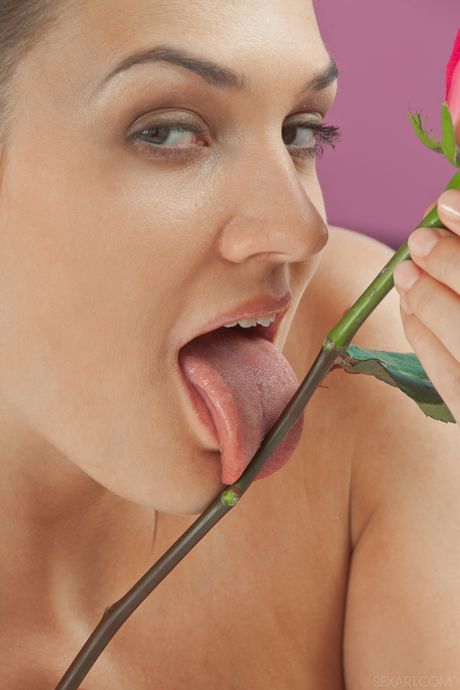 Pure teen Vanda B touches her pussy with a flower while naked on a bed