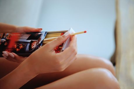Sexy blonde Lisa Dawn dribbles hot wax on her tits before masturbating