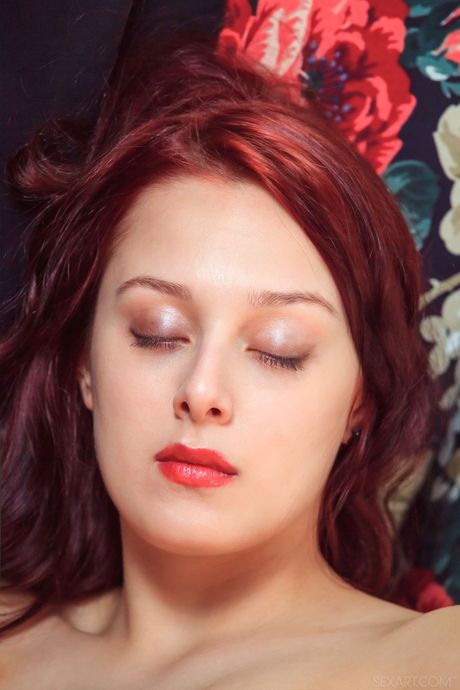 Sexy redhead Olivia Honey fingers her pussy after getting naked on a bed