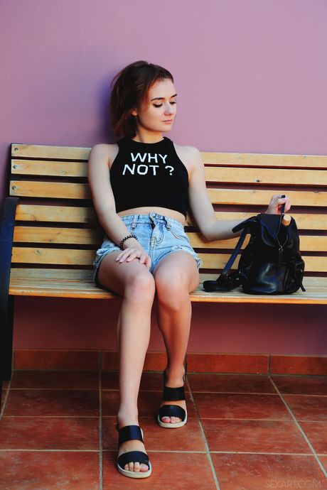 Thin teen Alice Shea fingers her pussy after removing her clothes