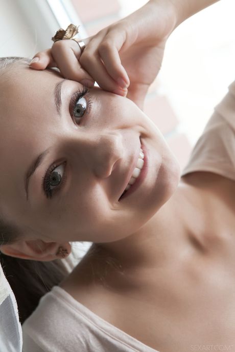 Ukrainian erotic model Ennu A spreading naked to show her bald pussy close up