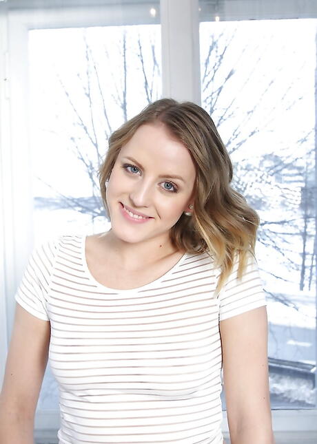 Sexy amateur Patricia Baum in shorts shows big boobies and plays with toy