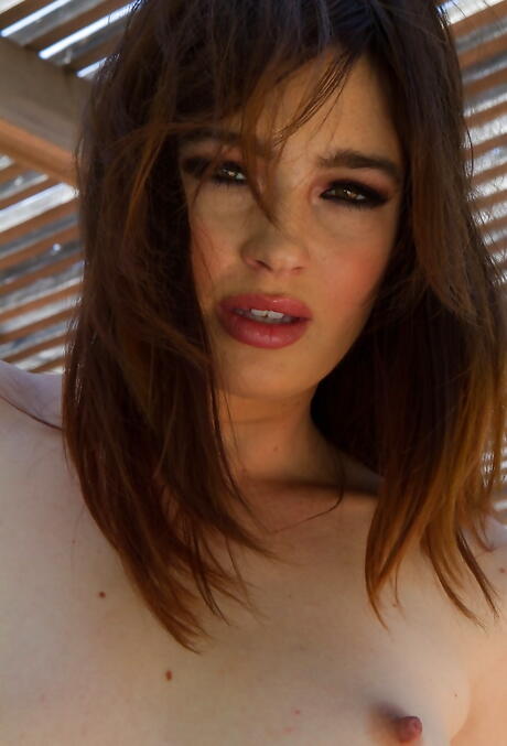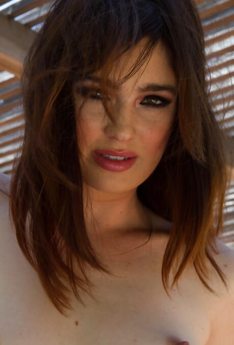 Sexy american babe Jodi Taylor in sexy undies exhibits small tits and loves sex toy outside