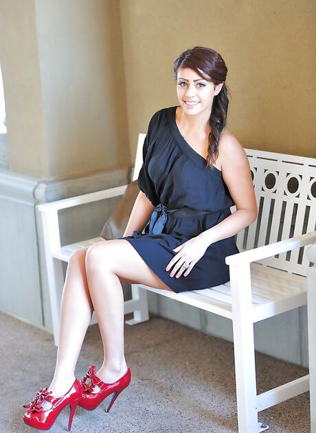 Sexy american babe Shay Parker baring big hooters and bald pussy outside