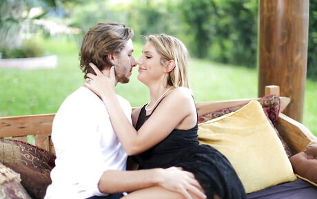 Sexy american blond bombshell August Ames banged after hot suck outdoor