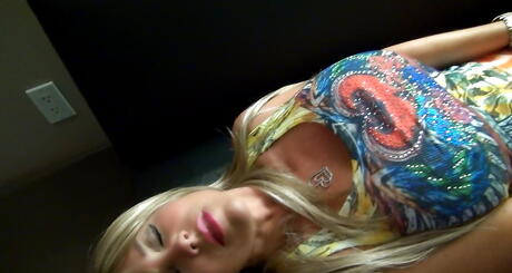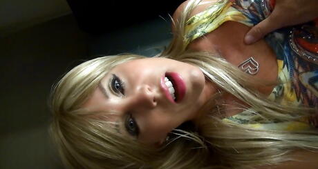 Sexy american blond housewife Sandra Otterson tease dick and gets a cum blast in her mouth
