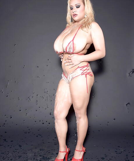 Sexy american blond milf Liza Biggs showing big tits and pussy