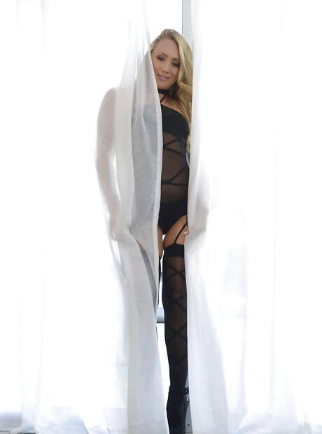 Sexy american blond porn star Aj Applegate in sexy underwear shows her butt