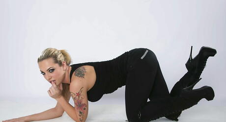 Sexy american blond porn star Bailey Blue in sexy lingery reveals her ass and sissy