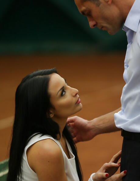 Sexy american brunette Anissa Kate in nice skirt well sucking dick and gets a cum shot on face outside